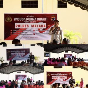 Malaka – Suasana haru dan penuh kebanggaan menyelimuti pelaksanaan Upacara Wisuda Purnabakti Anggota Polres Malaka yang digelar pada Selasa (30/03/2026) pukul 16.00 Wita di Mako Polres Malaka, Kecamatan Malaka Tengah, Kabupaten Malaka.