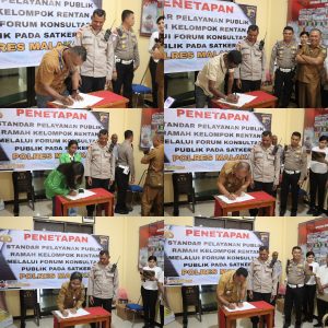 Selanjutnya, para pejabat utama Polres Malaka memaparkan Standar Pelayanan Publik, meliputi paparan dari Kasat Intel, Ka SPKT, Kasat Lantas, dan Kanit Pidum. Para undangan turut aktif memberikan saran dan masukan yang konstruktif untuk memastikan pelayanan publik di Polres Malaka berjalan optimal dan sesuai dengan harapan masyarakat. Kegiatan diakhiri dengan penandatanganan Berita Acara Penetapan Standar Pelayanan Publik Ramah Kelompok Rentan dan sesi foto bersama.
