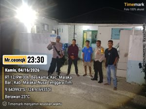 Malaka Barat – Dalam rangka menjaga situasi keamanan dan ketertiban masyarakat (kamtibmas) agar tetap aman dan kondusif, personel Polsek Malaka Barat melaksanakan kegiatan patroli dialogis pada Kamis, 16 April 2026, pukul 23.30 WITA.